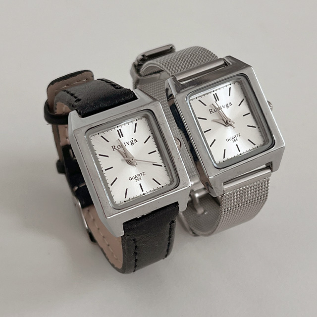 실버메탈 손목시계 사각 가죽 여성 스퀘어 패션시계 학생 아날로그 심플