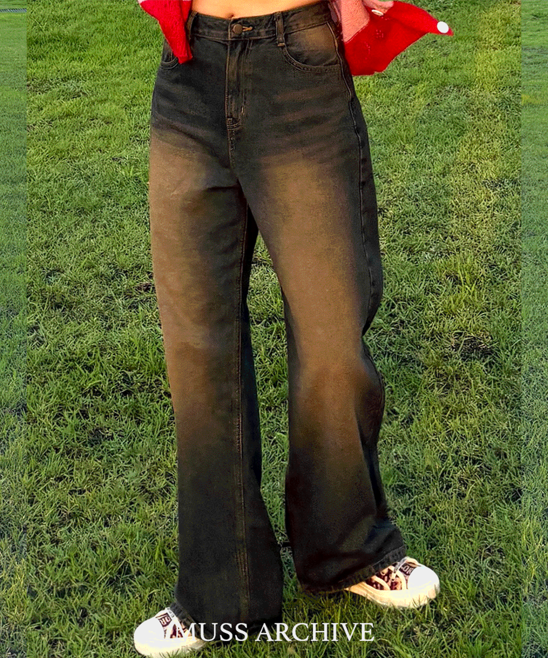 [당일출고/하비추천💙] 딥블루 빈티지 데님, 여자 사계절 청바지 팬츠 빈티지워싱 와이드 데님팬츠