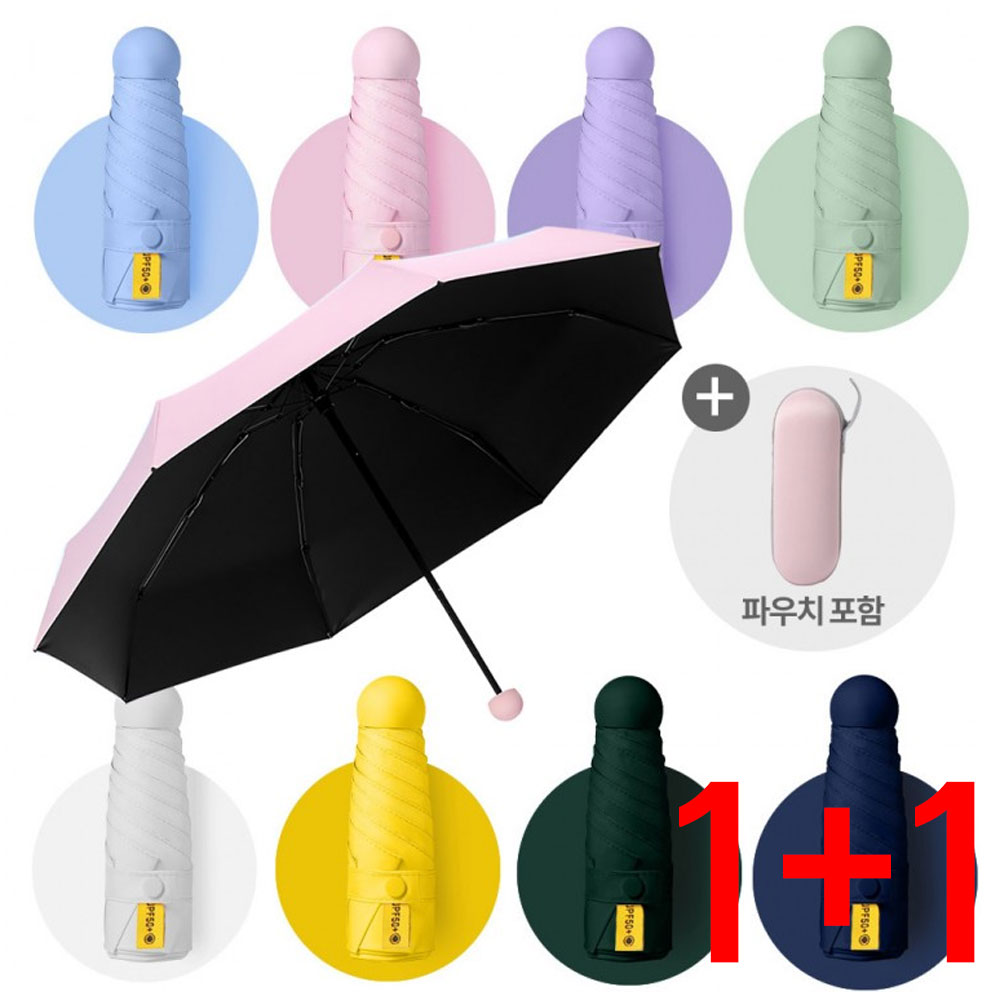 (1+1) 초경량 미니 양우산 양산 우산 접이식 자외선 UV 차단 암막 파우치 포함