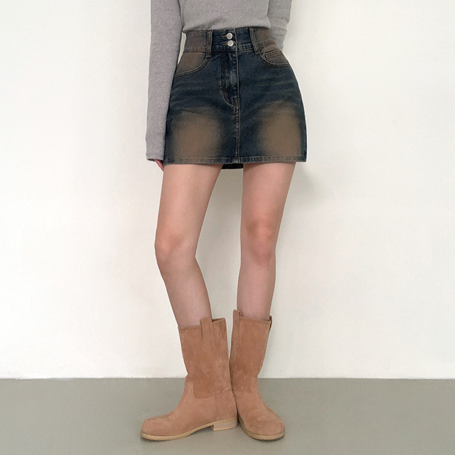 💗20%할인💗[JOYSMADE/볼륨업/골반패드] 케이트 허리잘록 몸매보정 핏보장 골반뽕 힙딥커버 투버튼 데님 미니 스커트