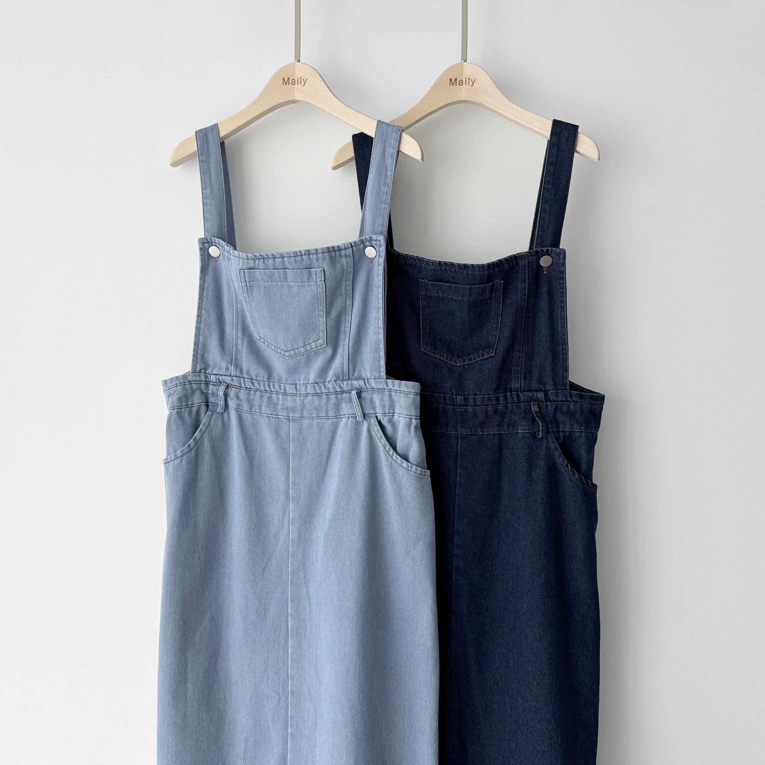 핏예쁨🌻 오버롤💙 면 데님 뷔스티에 오버롤 민소매 끈 나시 봄 여름 가을 청 멜빵 치마 롱 원피스