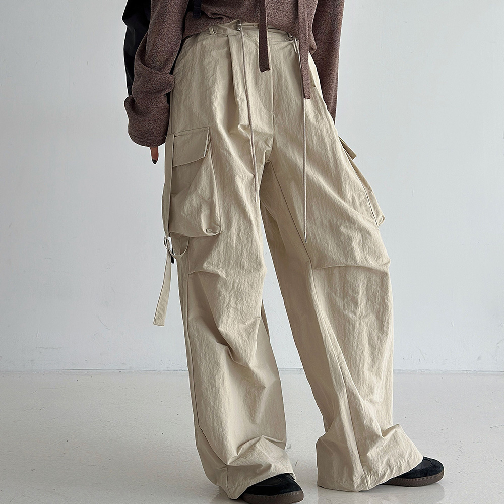 여자 아메카지룩 버클 카고 와이드 스토퍼 나일론 바지