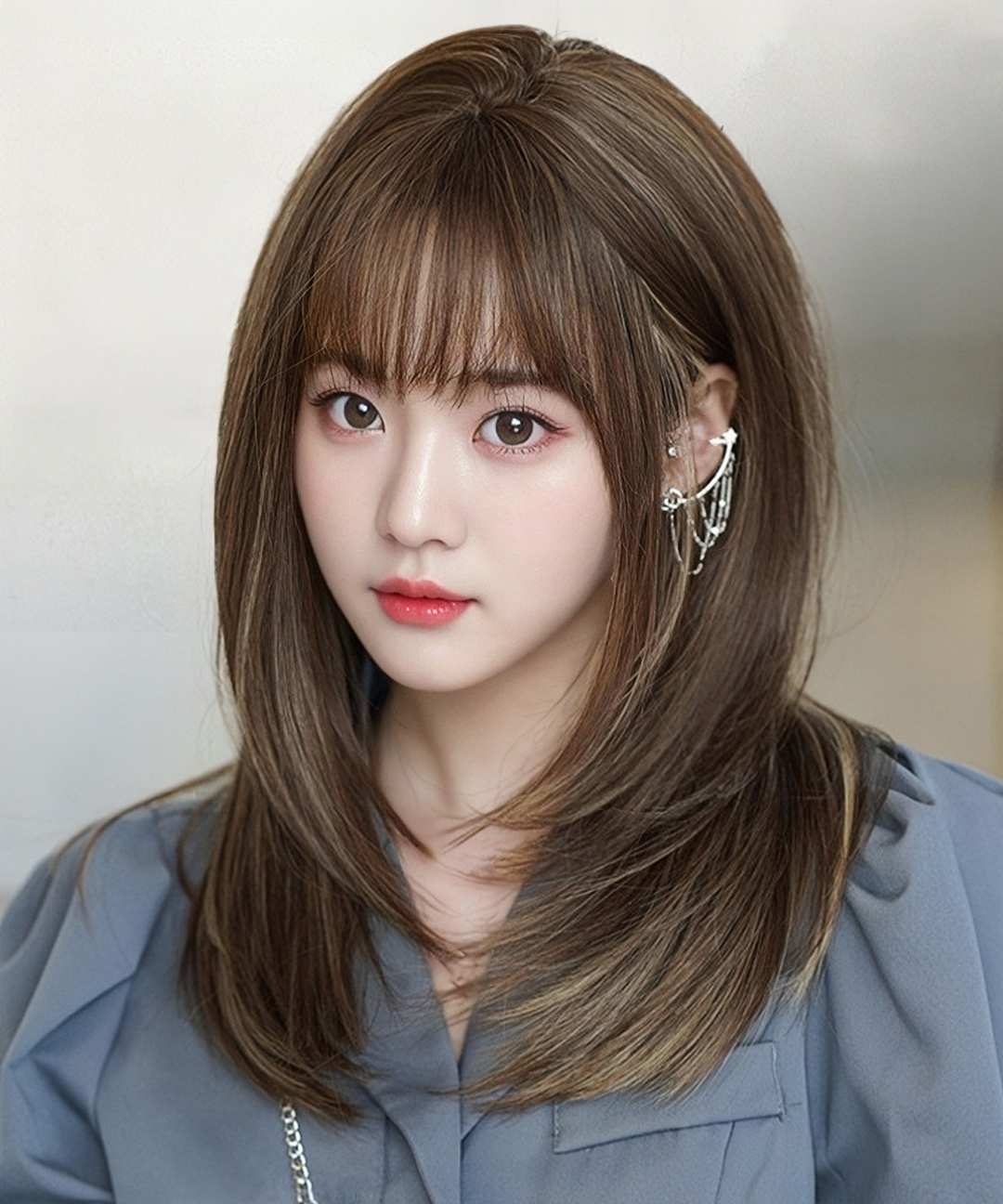 여성 통가발 시크릿 투톤 긴머리 레이어드 컷 중단발 53cm