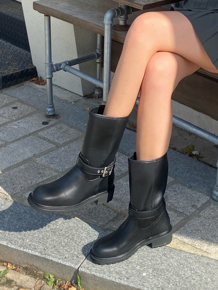[인플루언서 은채 PICK] 바이커 버클 스트랩 미들부츠 4CM HPWXAEFV01