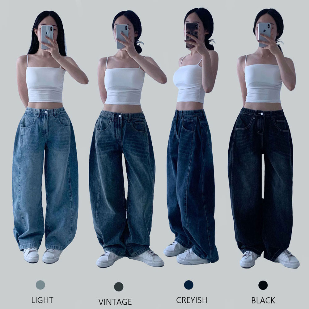 [밑단스냅/*숏,미디,롱*/핀턱/4COL] 제이닝 140/150/160 기장선택 하이웨스트 빈티지 워싱 핀턱 코튼 청바지 스냅 단추 버튼 하이웨스트 롱 와이드 데님팬츠 당일