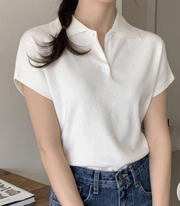 디벨 반팔 카라니트/폴로카라/여름티셔츠/반팔티셔츠/화이트티셔츠/여행룩/동남아/데이트룩/데일리룩