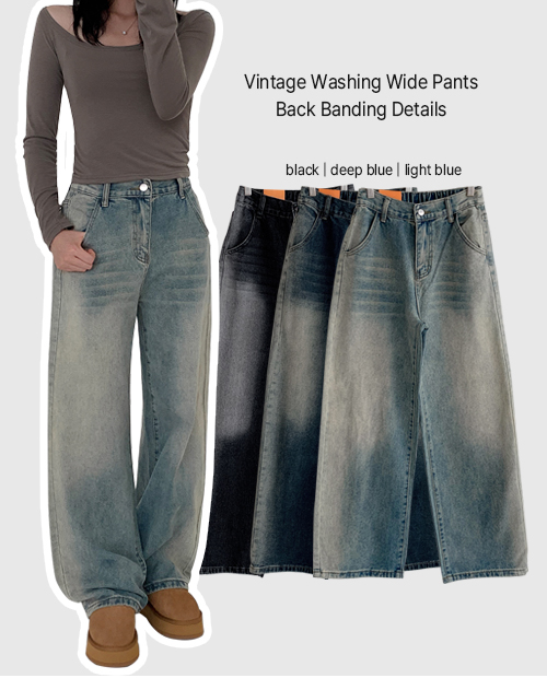 💛사계절💛 빈티지 워싱 드뮤어룩 밴딩 와이드 데님 팬츠 하객룩 봄 여름 LK007 (3컬러/체형보정/청바지)