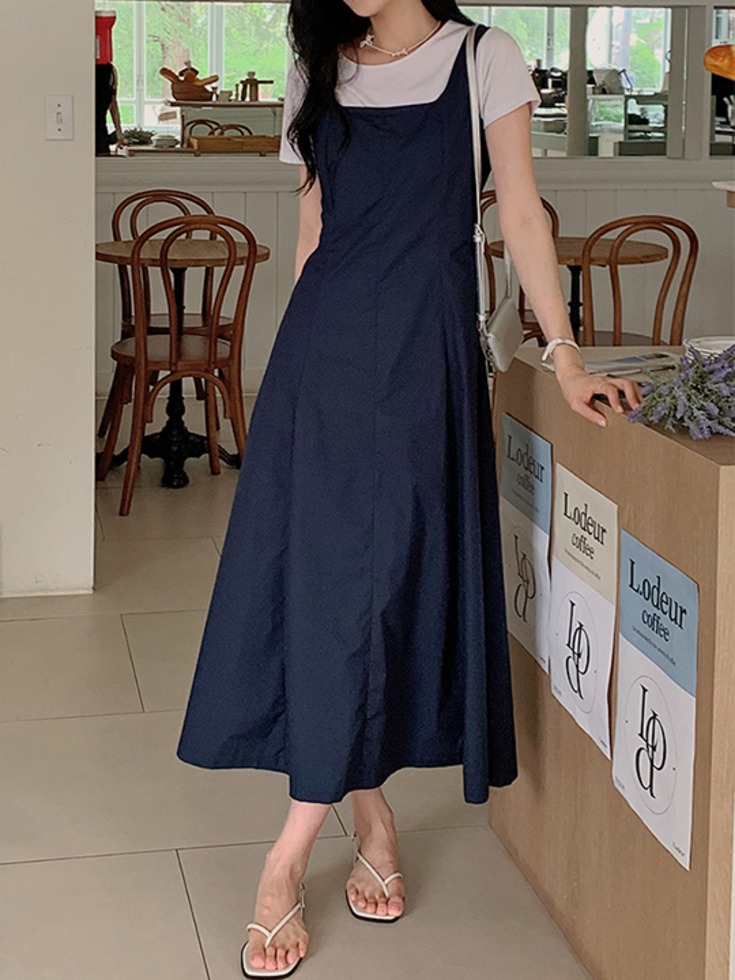 [44-120] 포니앙드 스퀘어넥 레이어드 나시 롱 원피스( 여름-데일리룩-데이트룩-캐주얼룩-러블리룩-공항룩-휴가룩-휴양지룩-바캉스룩-비치룩-빅사이즈-120사이즈-자체제작-시원한-모던-통통녀-뷔스티에 )