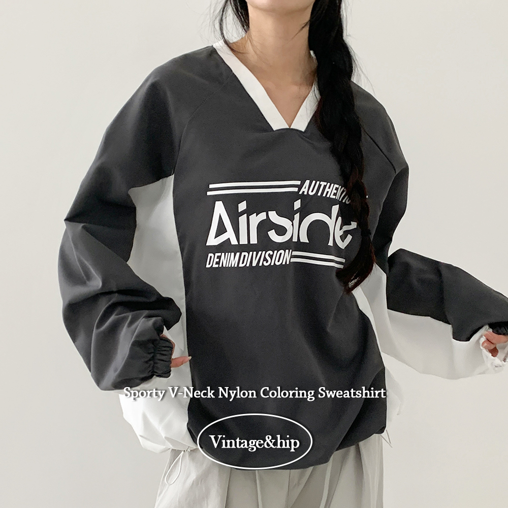 🖤기획가[오버핏/블록코어!] *간절기 꼭 소장* 클로티 블록코어 프린팅 배색 나그랑 박시핏 브이넥 맨투맨 #간절기 #맨투맨 #가을 #가을옷 - 6color