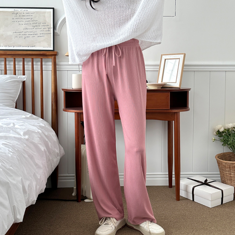 여자 봄 가을 긴 통큰 바지 데일리 키작녀 오버핏 찰랑 스트라이프 와이드 팬츠