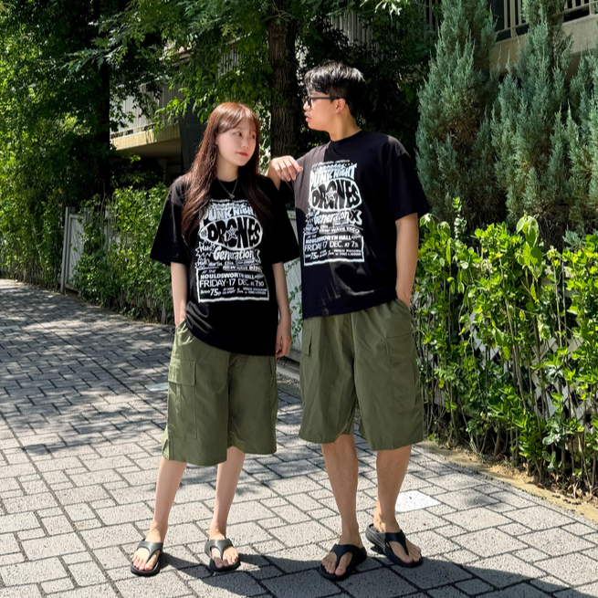 [세트가능] 남녀공용 오버핏 반팔 커플룩 커플시밀러룩 카고 밴딩 반바지 버뮤다팬츠