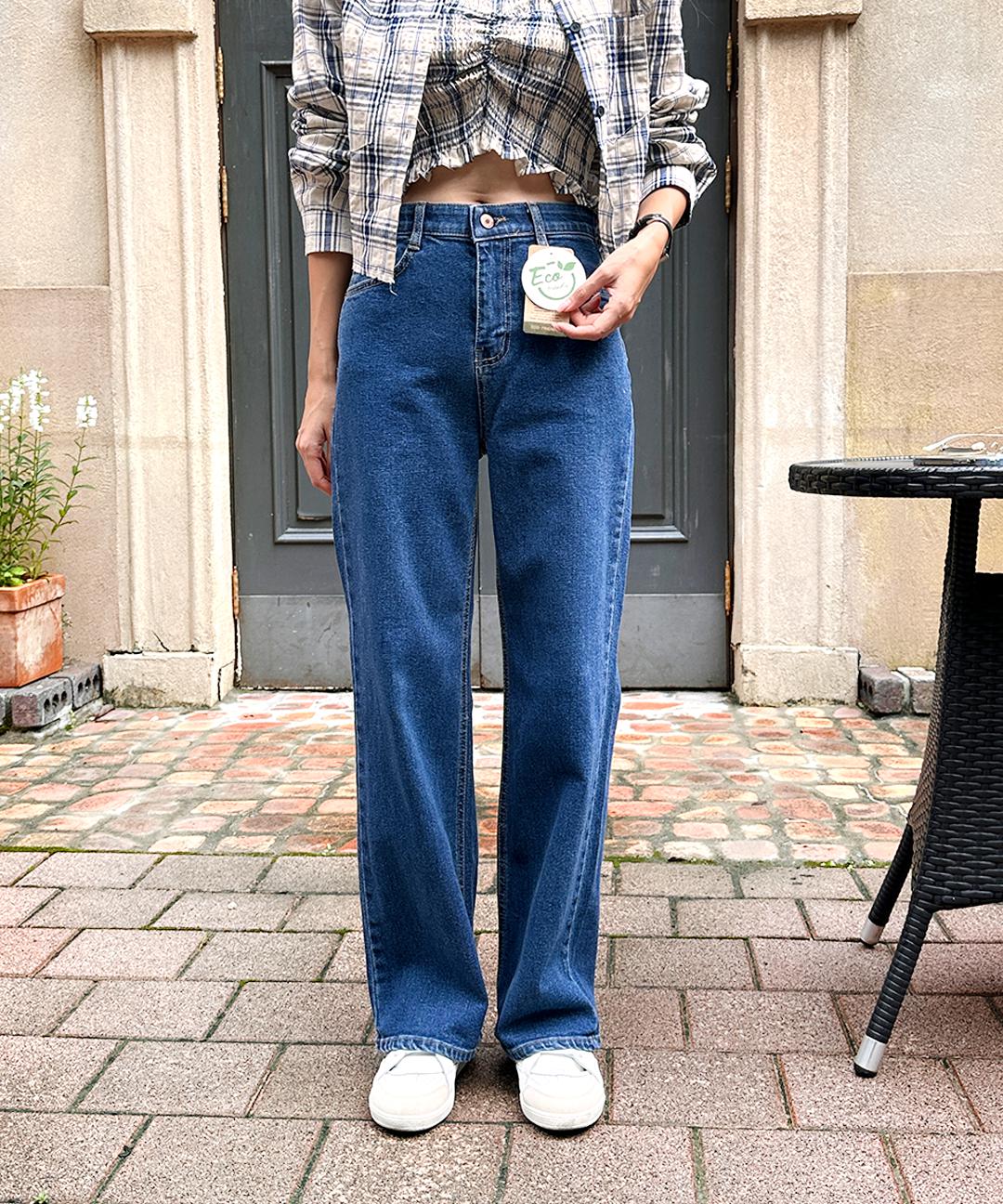 핏이 예쁜 여성 밴딩 일자핏 세미와이드 기모 청바지(진청 M 한장)