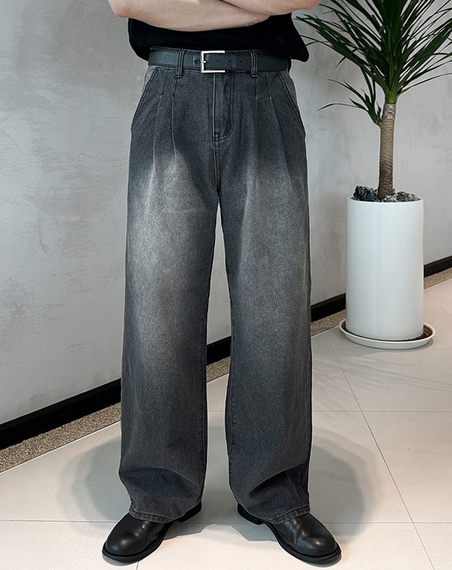 [남친선물]워싱 브러쉬 투턱 와이드데님 남자청바지 와이드데님 남자바지 빅사이즈 청바지 통바지 빈티지 그레이 남친룩 개강룩 남자데님 가을데님