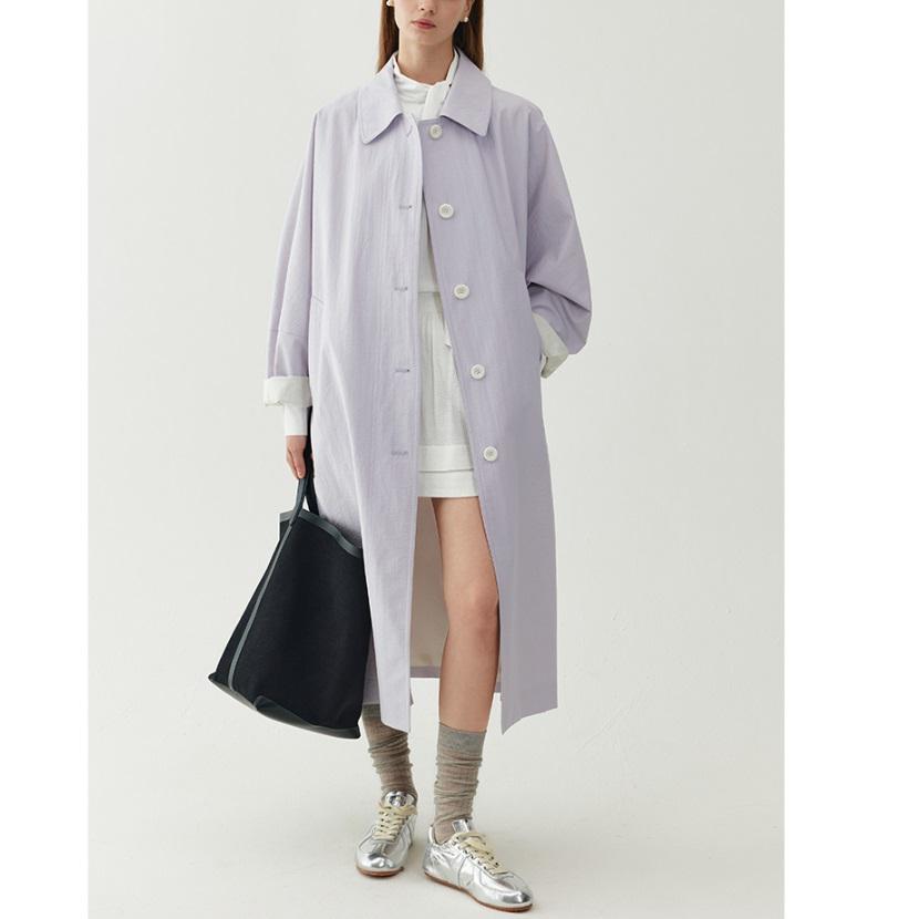 연보라 롱 코트 카라넥 트렌치 바스락 뒤트임 핸드메이드코트