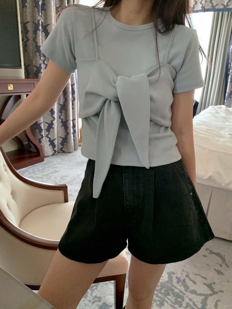 mellounge 멜라운지 소프트 리본 뷔스티에 반팔 티셔츠 세트 3color