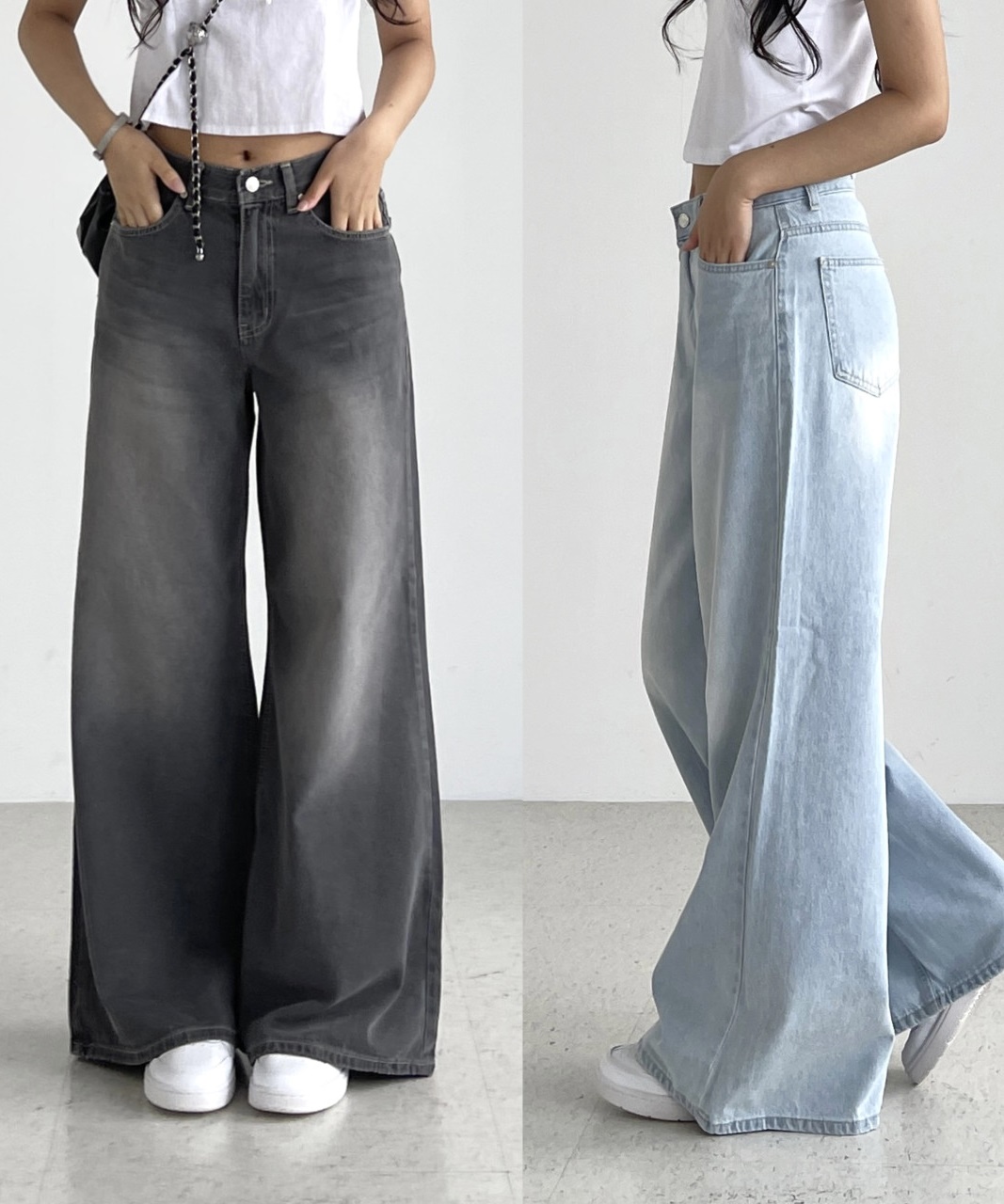 와이드 청바지 연청바지 흑청 그레이진 여성 하이웨스트 부츠컷 빈티지워싱 여자 통 데님팬츠