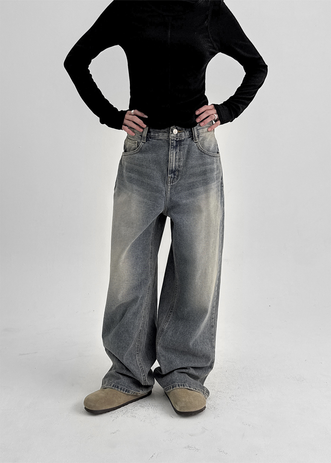 [6천장판매] 마럼블 워싱 와이드 데님팬츠