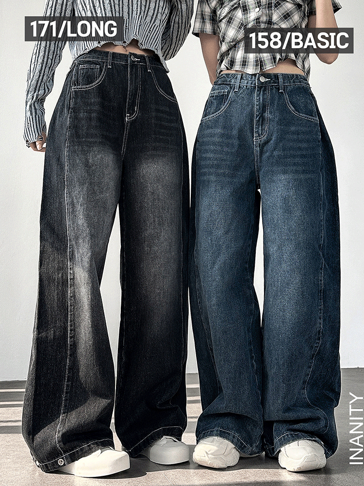 당출🚀[숏/기본/롱ver.] 맥시핏 옆핀턱 밑단 스냅 버튼 롱 와이드 데님팬츠 4color