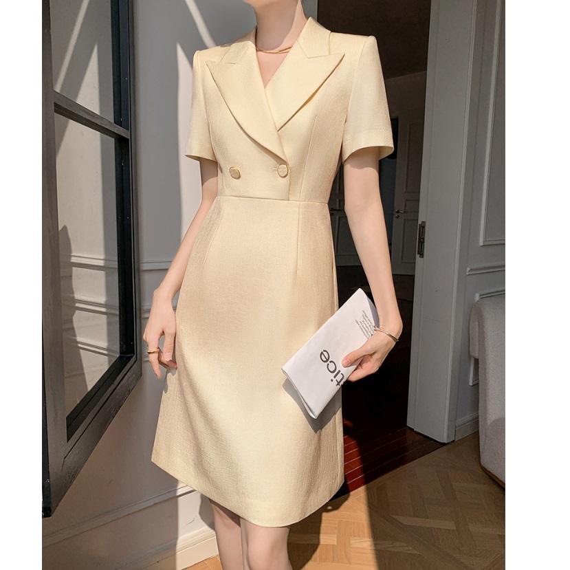 하객원피스 빅사이즈 돌잔치엄마 더블 옐로우 정장원피스 예복 결혼식하객룩 88사이즈