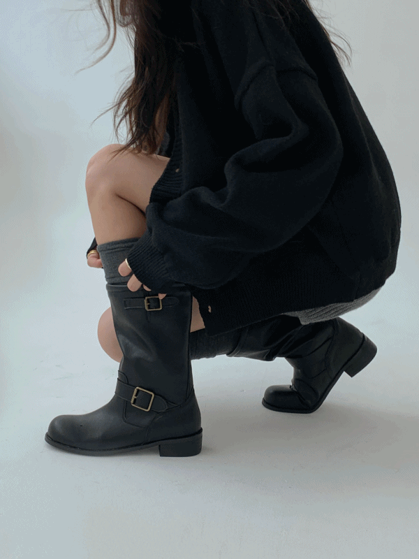🍁가을롱부츠🍂 라이더 투 벨트 롱 하프부츠 (3CM)