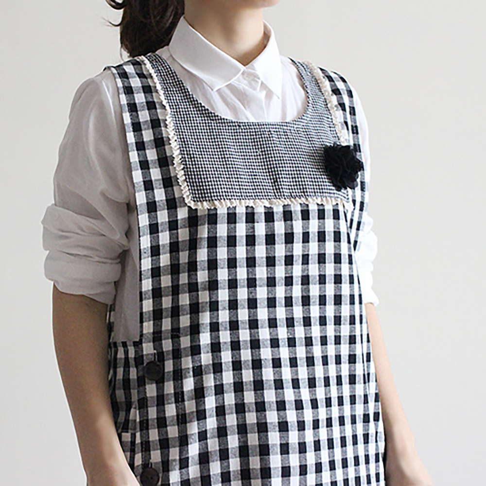 코사지 깅엄체크 원피스앞치마 홈웨어 어린이집 조끼형 앞치마