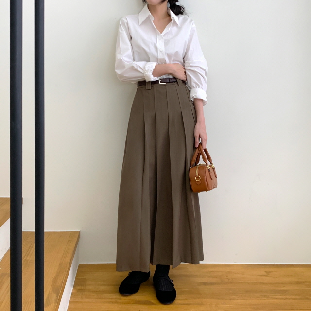 [2단기장/뒷밴딩!] 메이레빈 플리츠 핀턱 밴딩 가을 플레어 치마 A라인 롱 스커트
