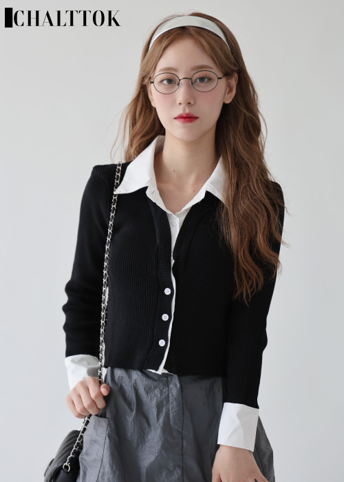 [인기상품] 모나코셔츠세트(간절기 봄/가을 니트가디건 셔츠세트 레이어드 일체형 긱시크)