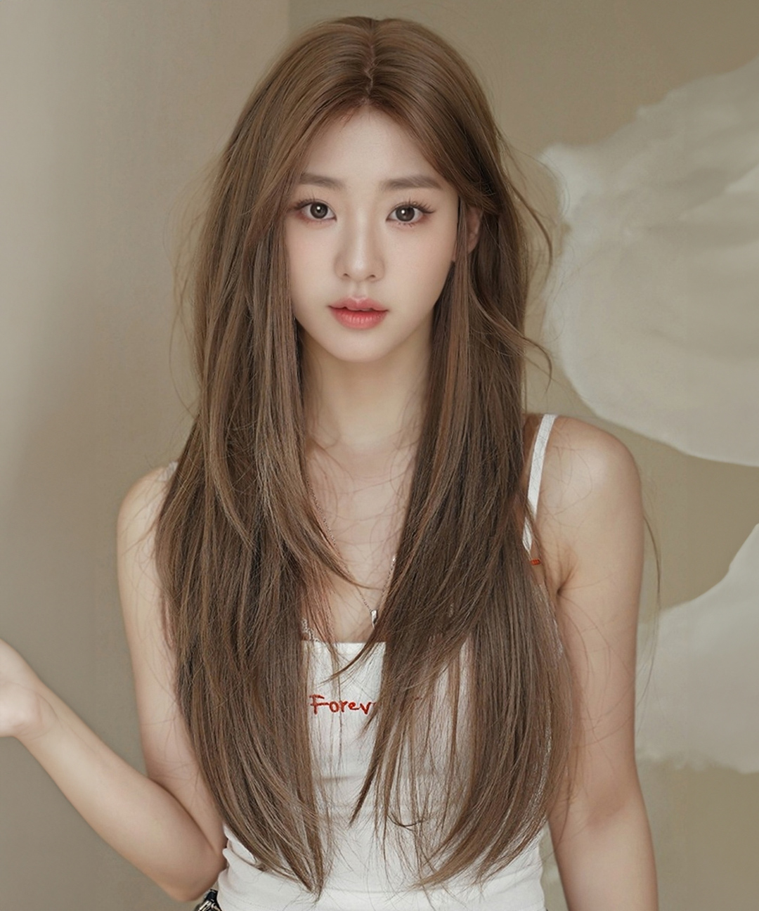 여성 수제 통가발 레이어드 컷 가르마 스트레이트 긴머리 70cm