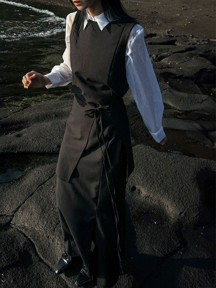 레이어드 슬릿 맥시 롱 원피스 (랩스커트 세트) 2color