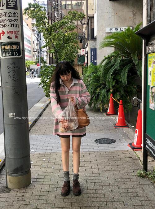 [당일/MADE/국내] 치코 럭비스트라이프긴팔티셔츠-핑크그레이 (단독주문만 당일 출고 가능!)