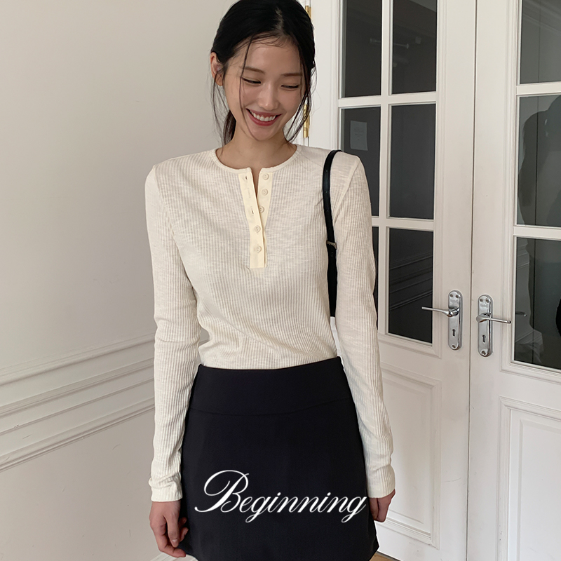 [오늘배송][MADE]텐더 슬림골지버튼 티 (2color) (티셔츠 골지티 긴팔티 기본티 레이어드 이너티 나시 가디건 셔츠 데일리룩 하객룩)