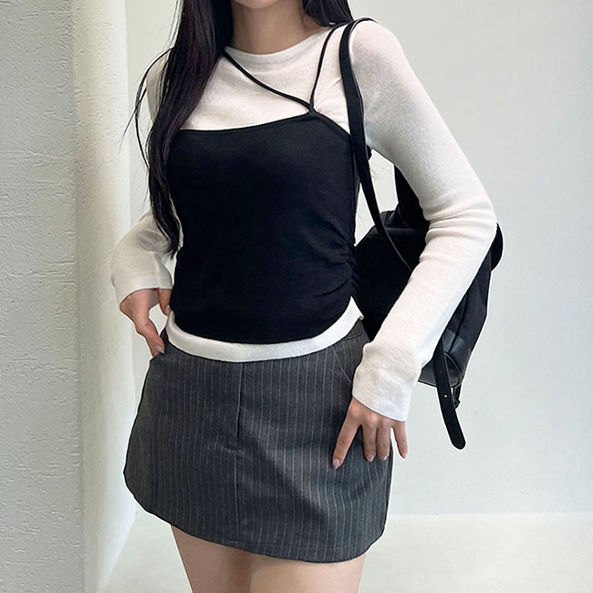 [스트라이프 미니//치마반바지/레이어드스커트/꾸꾸] 바인 스트라이프 레이어드 치마 바지