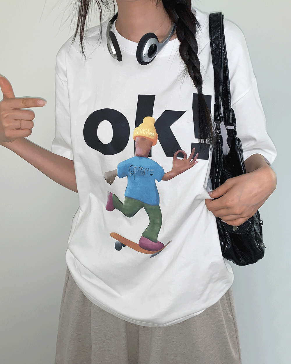 옥히 OK 유니크 프린팅 오버핏 반팔 티셔츠
