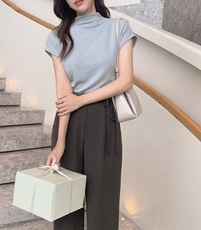 [🎁라스트할인30%][🤍1만장돌파🙌연말룩/하객룩/출근룩][MADE] 르헤르 하프넥 반팔 니트 티셔츠