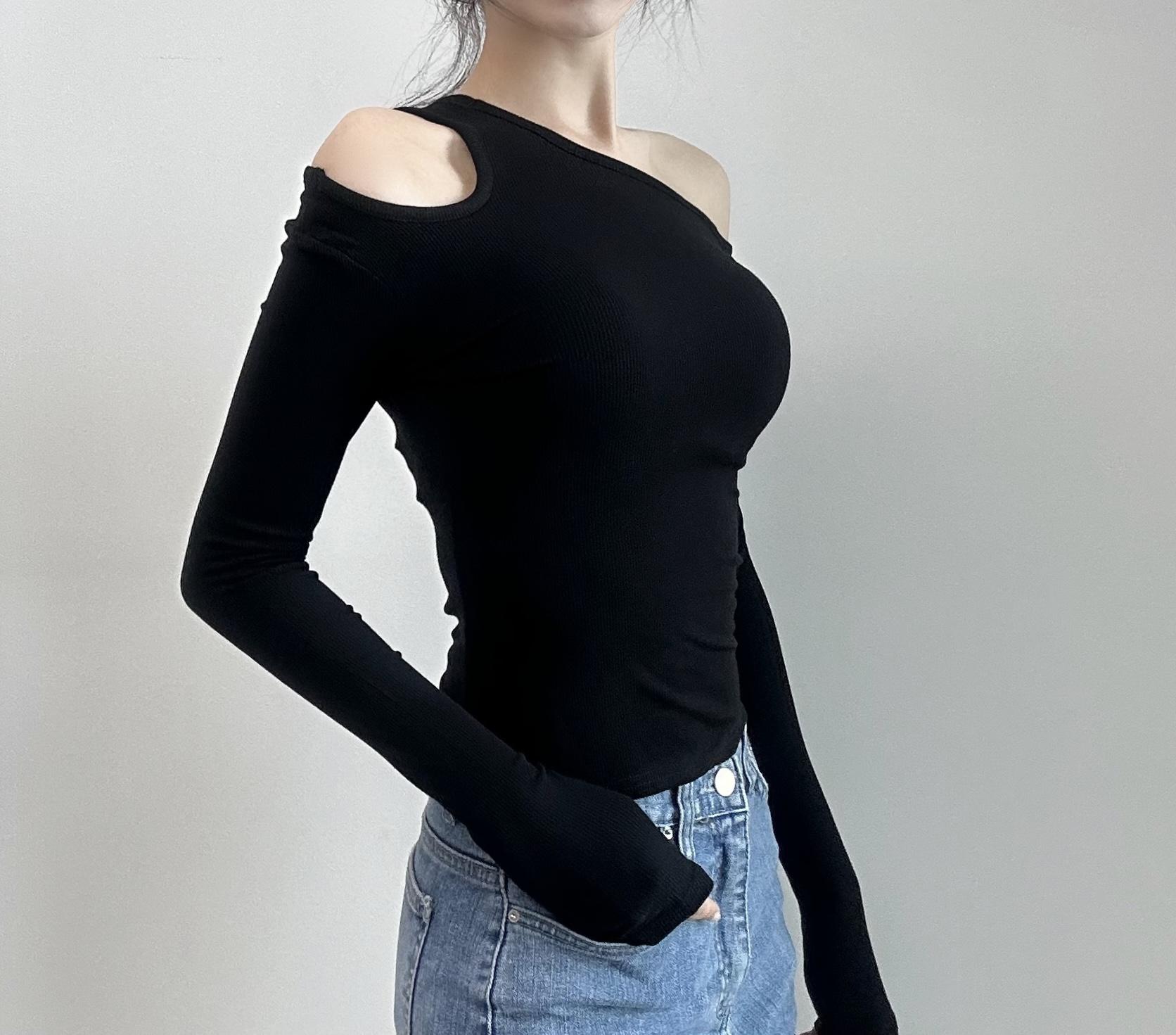 🖤쫀쫀/슬림🖤 언발 오프숄더 긴소매 어깨트임 긴팔 티셔츠