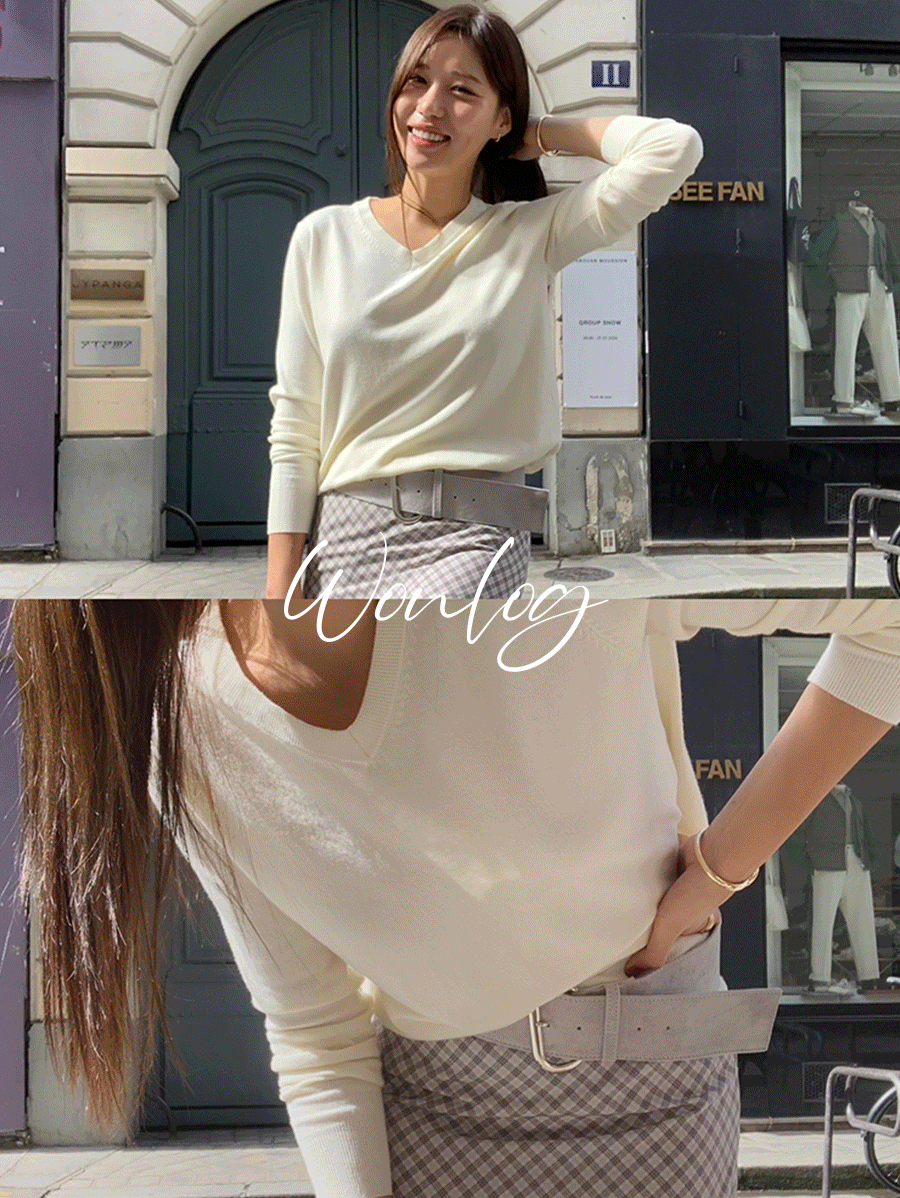 [단독][+네이비/누적1만장] WONT 치즈 브이넥 니트