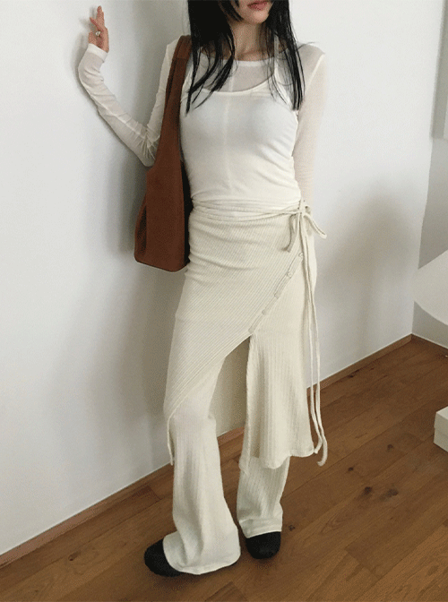 리즈 랩스커트 부츠컷 팬츠 (4color) (치마바지/밴딩팬츠/레이어드스커트)