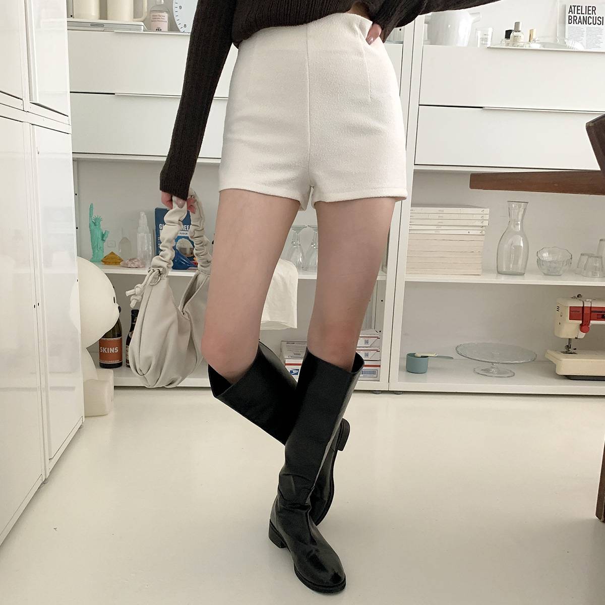 부클 딱붙는 슬림핏 3부 숏팬츠 화이트 반바지