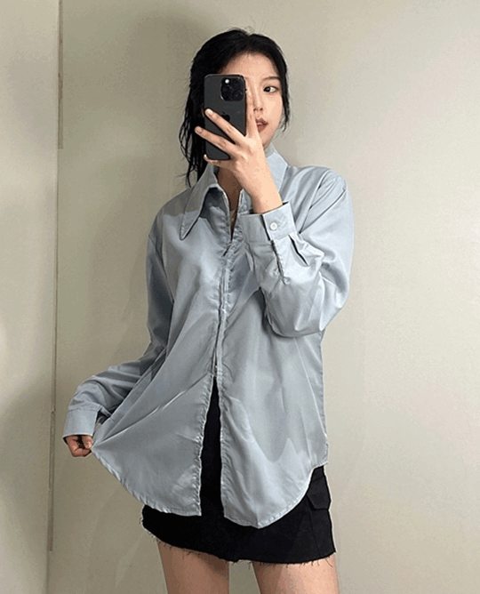 여성 언발 뒷트임 투웨이 긴팔 남방 셔츠 난방 [2color 여자 뒤트임 와이셔츠 오버핏 트임 카라 지퍼 버튼 루즈핏 블라우스 유니크 캐주얼 상의 옷]