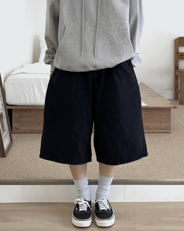 남녀공용 린다 와이드 버뮤다 데님 팬츠