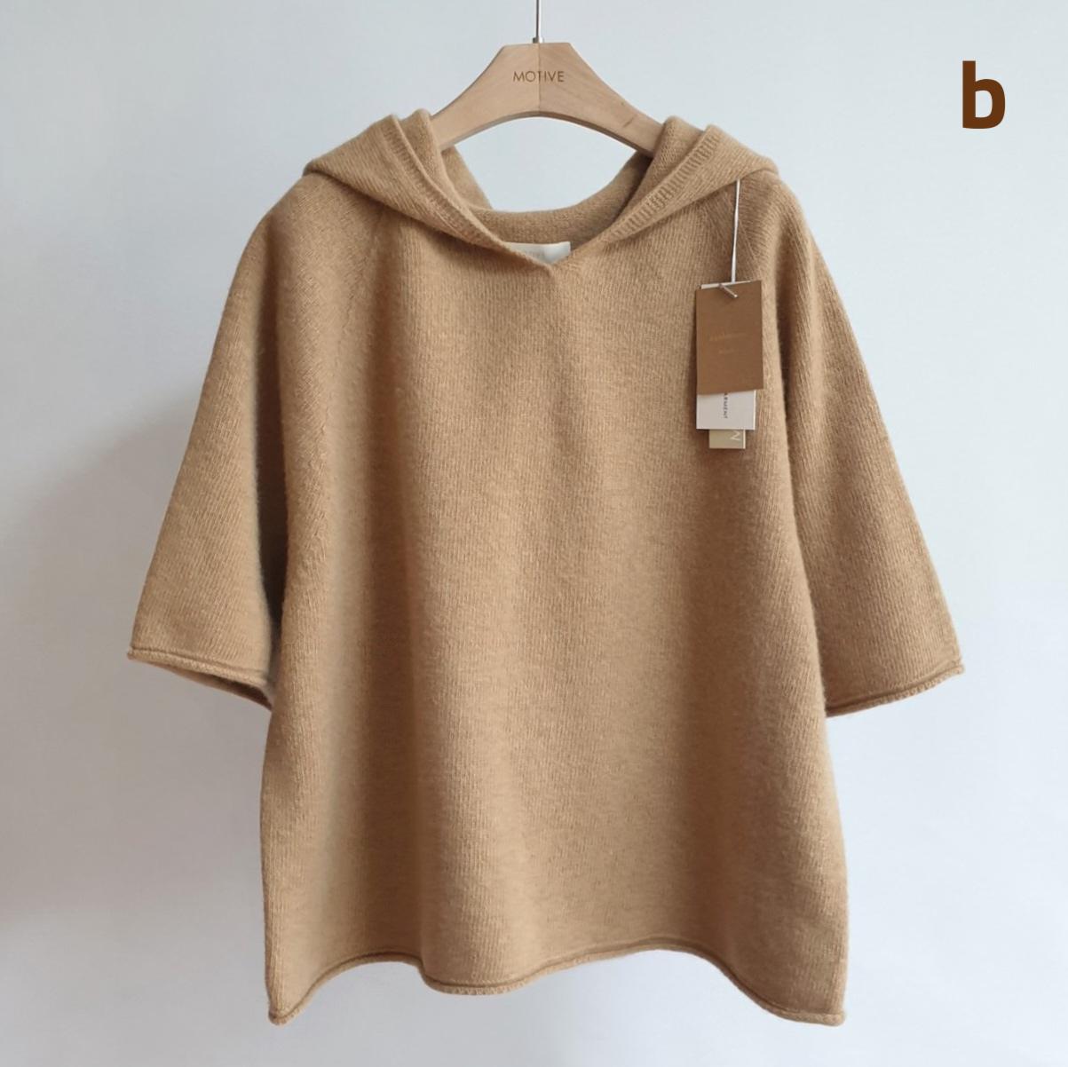 mv 루즈핏 후드니트 홀가먼트 허밍 야크 울 반팔 아이보리 카멜 그레이 그레이 네이비