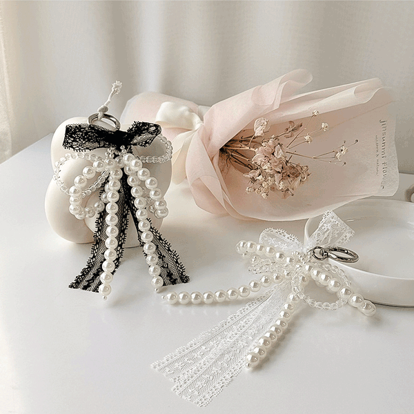 레이스 리본 투명 진주 포인트 키링