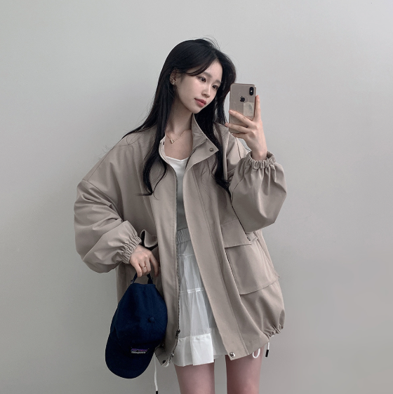 [핏존예/간절기템!] 루란 오버핏 하이넥 스트링 야상 자켓 (3color)