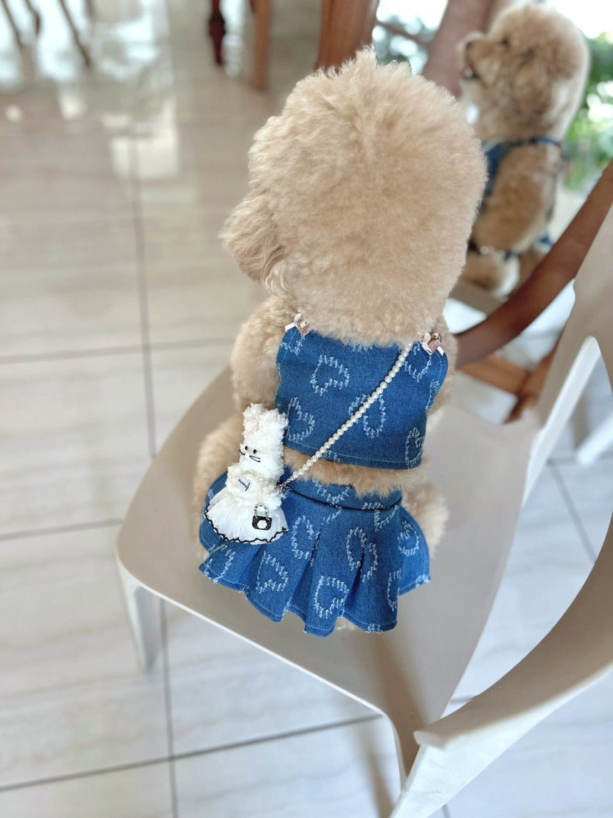 [바이올독] 쥬얼 하트 강아지 데님 크롭 나시