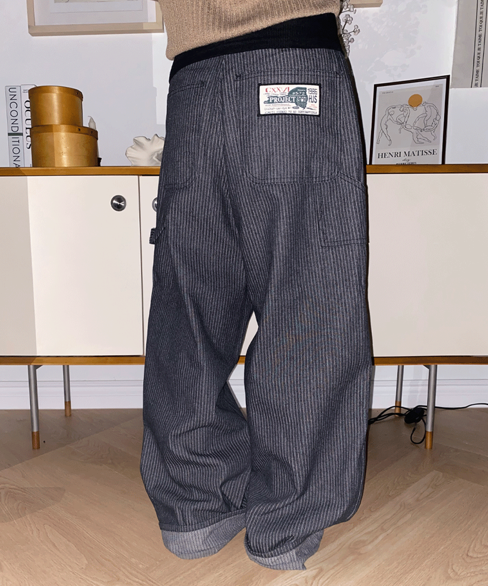 [500장판매/남녀공용/숏,롱] 테일 스트라이프 빈티지 패치 카펜터 데님 청 와이드 버뮤다 팬츠 바지 - 3 size
