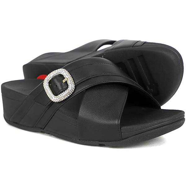 [정품] 핏플랍 루루 크리스탈 버클 레더 블랙 여성 크로스 슬라이드 (HO1-001)