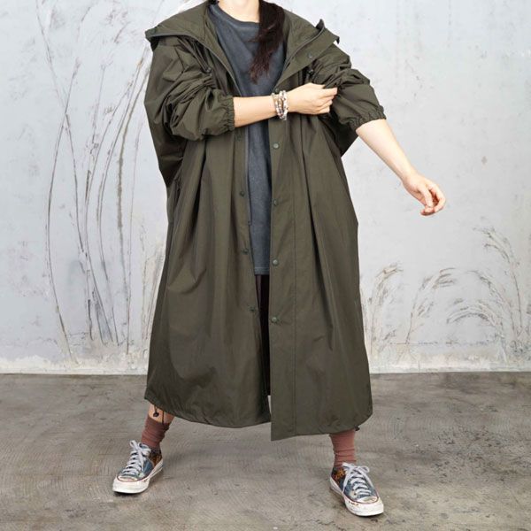 여성 텐트원단 방수 오버핏 후드 야상 레인 코트
