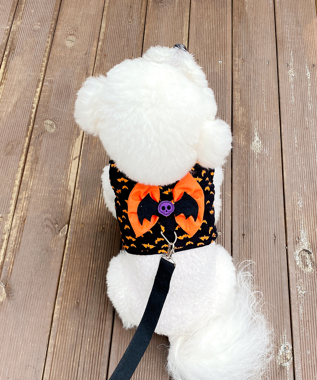 강아지 할로윈 박쥐 누빔 리본 하네스