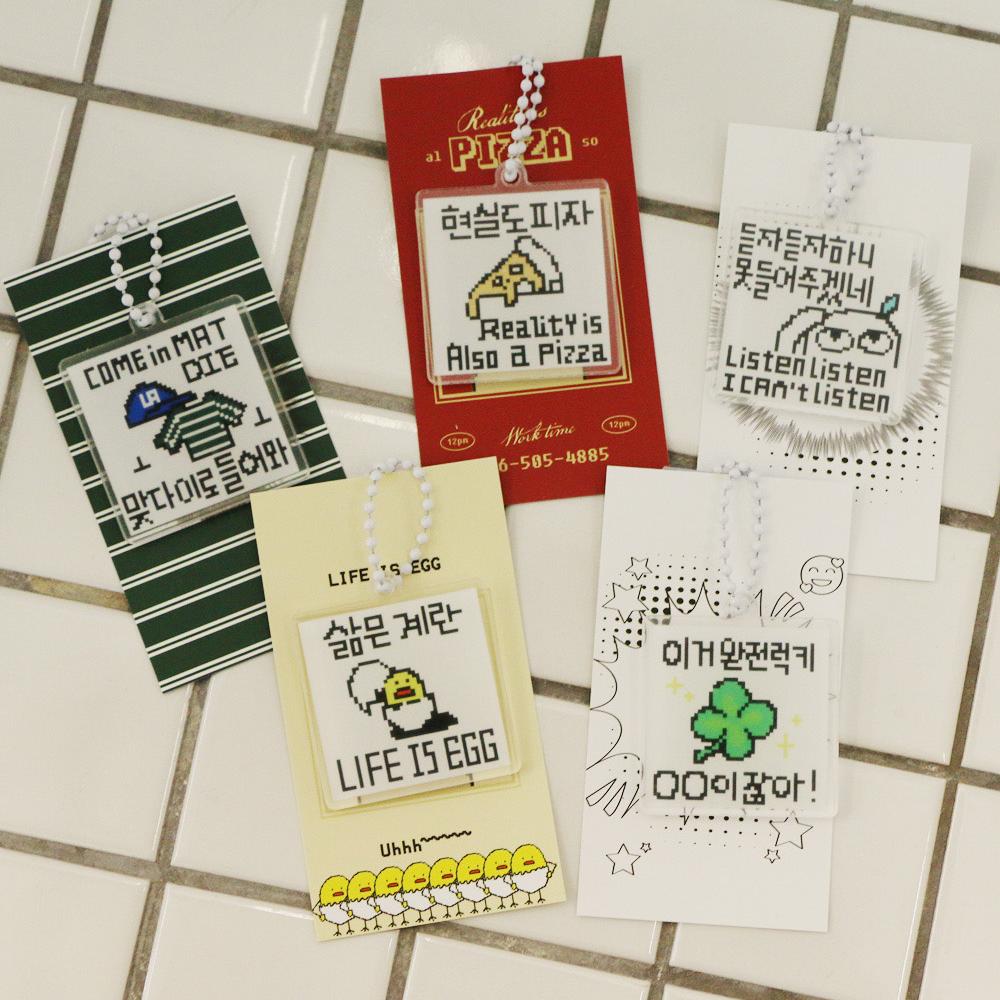 재밌는 킹받는 밈 짤 문구 픽셀 키링 5종 - 밈키링 웃긴키링 아크릴키링 귀여운 친구선물 쓸데없는선물 민희진키링 네잎클로버 백참 가방키링 열쇠고리 키홀더
