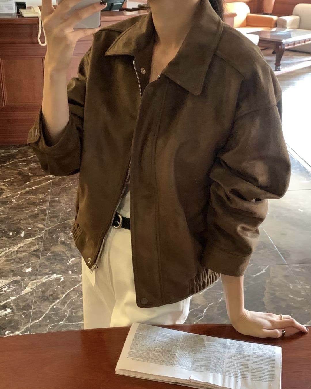 세라 스웨이드 블루종 1col 24FW 브라운 얼리어텀 가을신상 숏 카라 자켓 간절기 점퍼 데일리룩 아우터 여성 국내제작